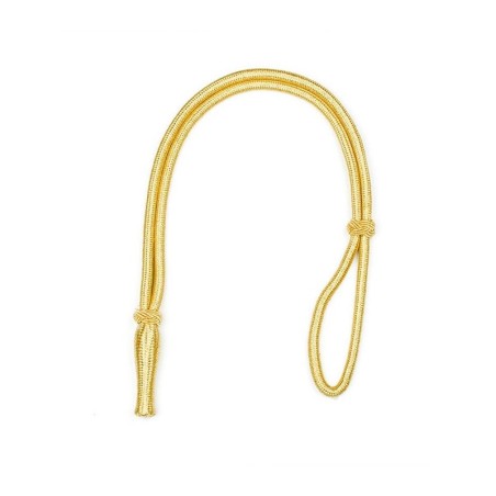 Formado por un cordón tejido de hilo dorado de unos 6 mm de diametro, en dos ramales de unos 45-47 cm de longitud, que se unen por una bellota alargada de material plástico o madera, forrada en un tejido de hilos blancos. A lo largo del fiador, dos pasadores móviles o cinchuelas unen los ramale