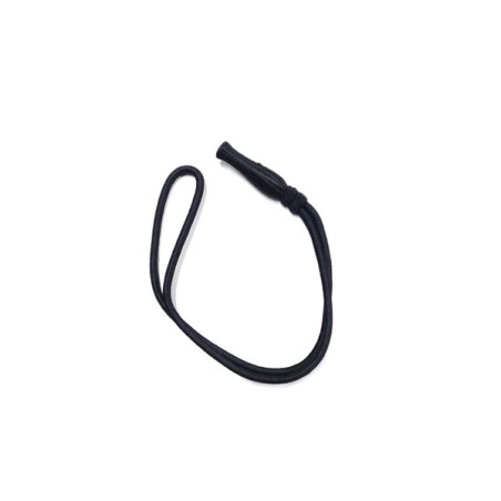 Formado por un cordón tejido de hilo negro de unos 6 mm de diametro, en dos ramales de unos 45-47 cm de longitud, que se unen por una bellota alargada de material plástico o madera, forrada en un tejido de hilos blancos. A lo largo del fiador, dos pasadores móviles o cinchuelas unen los ramale