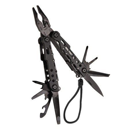 Alicates multiusos cobra compacta con cordón. Todas las herramientas se puedes desplegar con una sola mano.