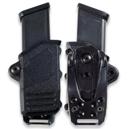 Es compatible con cinturones tácticos y plataformas Mollé, siendo totalmente versátil en su colocación. La retención del cargador es ajustable mediante un tornillo, proporcionando un ajuste firme y seguro para evitar movimientos no deseados. Su diseño compacto facilita el transporte sin añadir volumen innecesario al equipo.