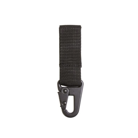 El KeyHolder de Miltec es un llavero compuesto por un enganche de mosquetón metálico y una tira de nylon con cierre de velcro. Para engancharlo en nuestro equipamiento táctico únicamente tenemos que despegar el velcro y pasar la cinta por el MOLLE o bien por el cinturón.