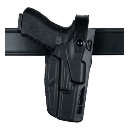 La funda Safariland 7280 con Sentry y Hoodguard puede alcanzar nivel III de seguridad antihurto. El Sistema SLS (Self Locking System) es un sistema giratorio que bloquea el desenfunda del arma.
