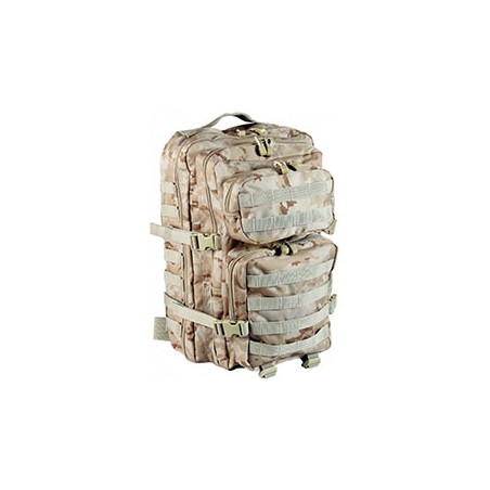 Es una mochila de asalto de sistema Molle, adaptable y ajustable. Muy resistente y con multitud de compartimentos diferenciados para mejor distribución de accesorios en su interior.