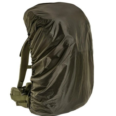 Funda de mochila ligera e impermeable en color Oliva para mochilas con una capacidad máxima de 80 litros.