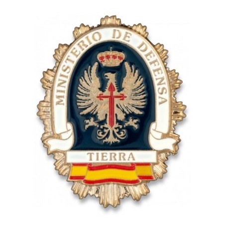 Placa identificativa del Ministerio de Defensa fabricada en metal de alta calidad con un baño de oro y esmalte.